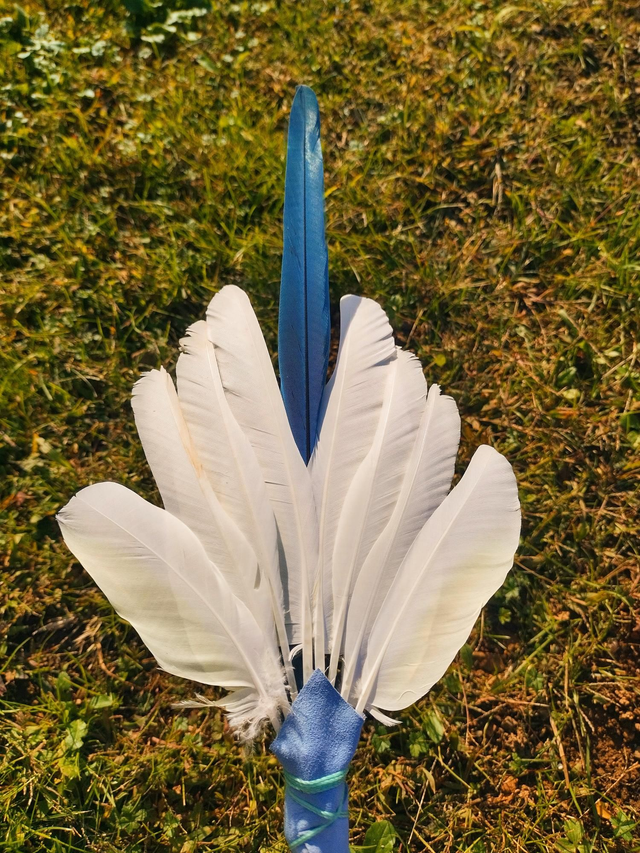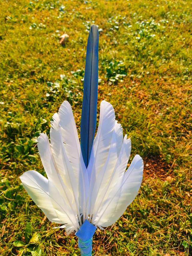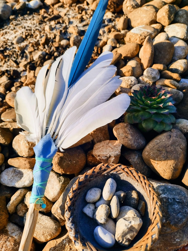 Pezzo unico e Raro impreziosito energeticamente con una penna di Ara, blue dorata, al centro.